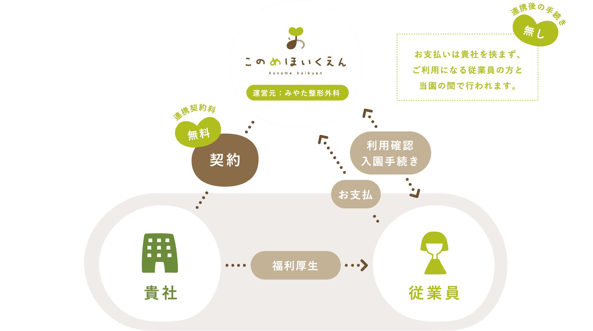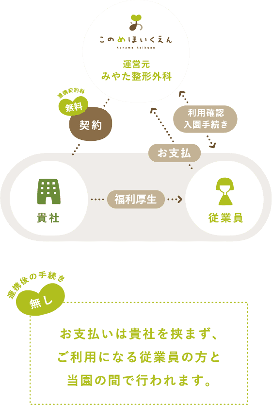 企業契約可能な保育園「このめほいくえん」と連携していただくことで